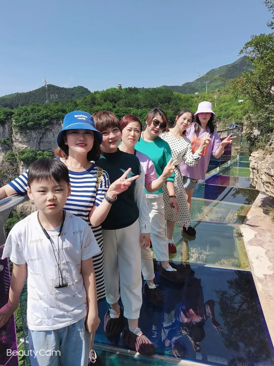 公司旅游團建第二天,大家重攬通天峽的全景,乘上纜車,登上多彩絢麗的七彩棧道,面對凌空的腳下,每個人的臉上都顯露出緊張的神情,但大家相互攙扶,相互鼓勵,如一家人一般其樂融融。