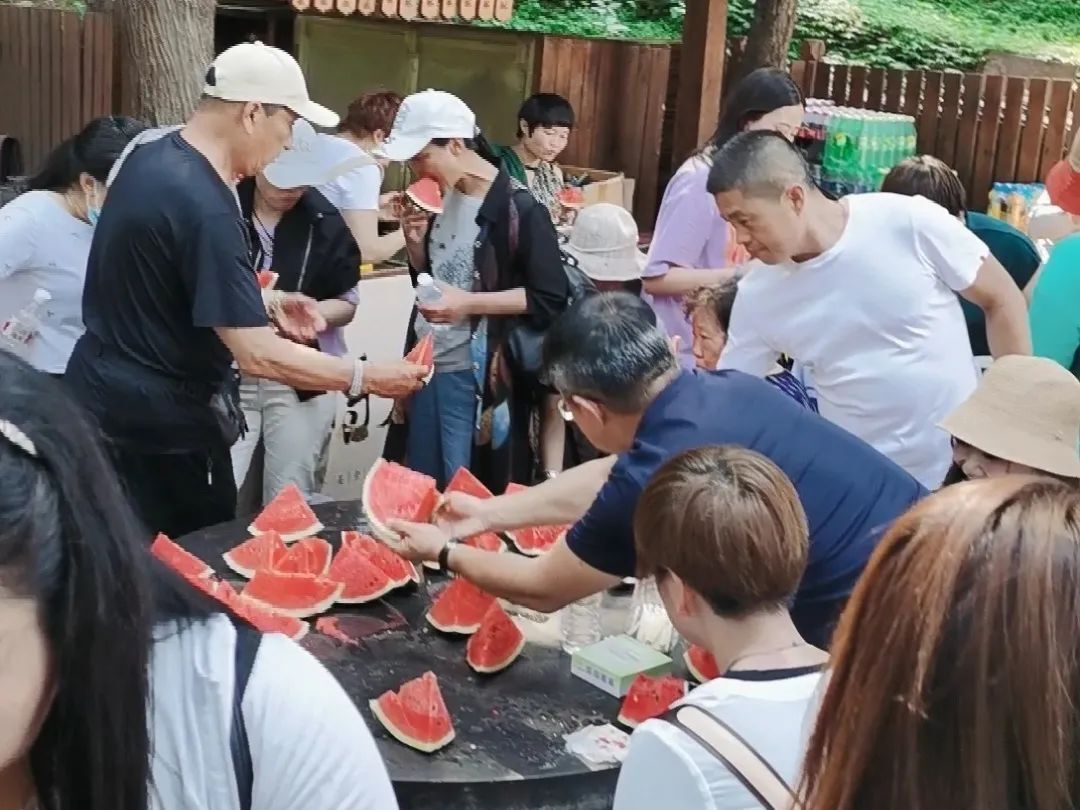 傍晚烈陽褪去火烈的外衣,悄無聲息的給人間留下陣陣清涼,大家乘著清涼吃起了西瓜宴。