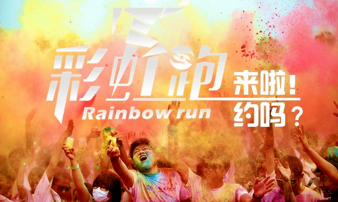彩虹跑也叫彩色跑(The Color Run),是一項被稱為“地球上最快樂的5公里賽跑”,參加者身著白色T恤,跑步過程中經過不同的彩色站,會被從頭到腳拋撒彩色粉末。據(jù)悉,彩色粉末由純天然玉米粉制成,對人體和環(huán)境無害。