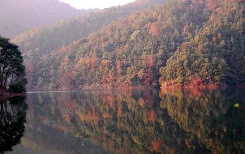 每逢秋冬季節(jié)猩紅的楓葉、橙紅的槭樹(shù)、深紅的山烏桕、淡紅的鹽膚木、嫩紅的荔枝紅葉浩浩然近萬(wàn)畝紅葉林如詩(shī)如畫(huà),美不勝收