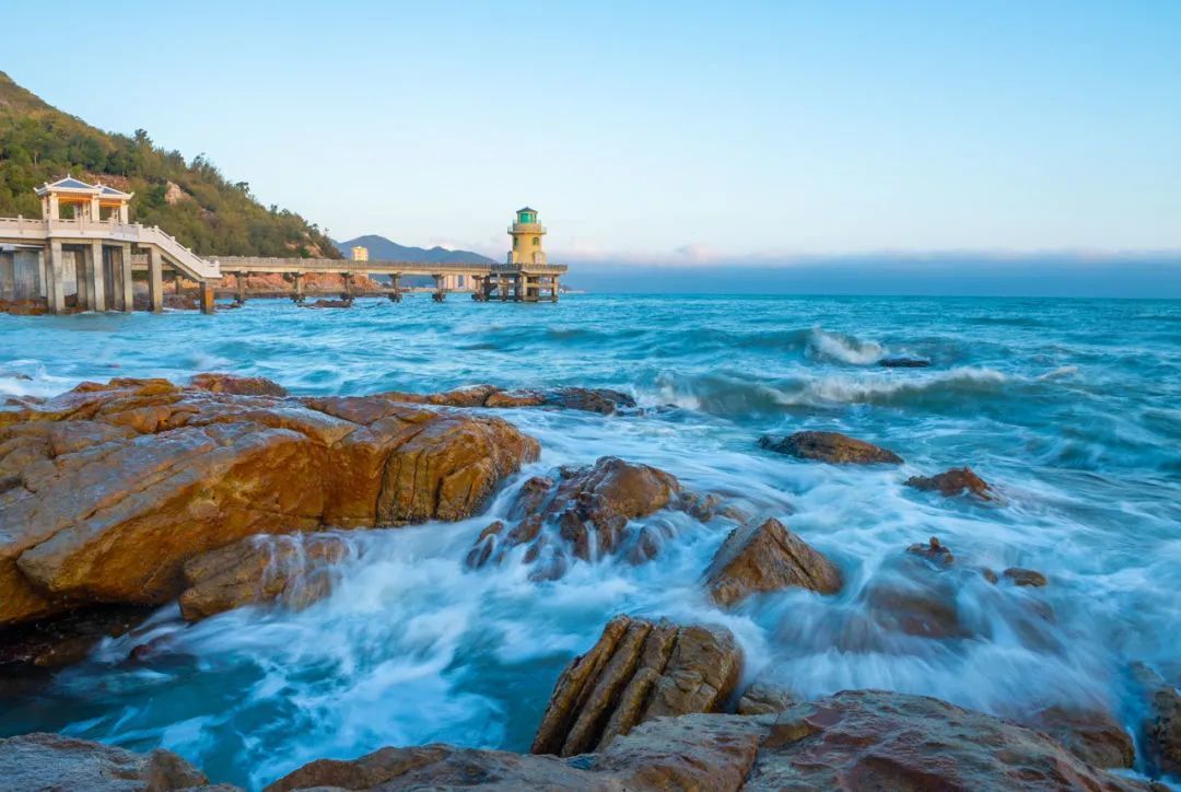 燈塔聳立,海景遼闊,海浪拍打著礁石,洶涌時激起層層浪花,咆哮不止,在這里能看到難得的壯闊景象。