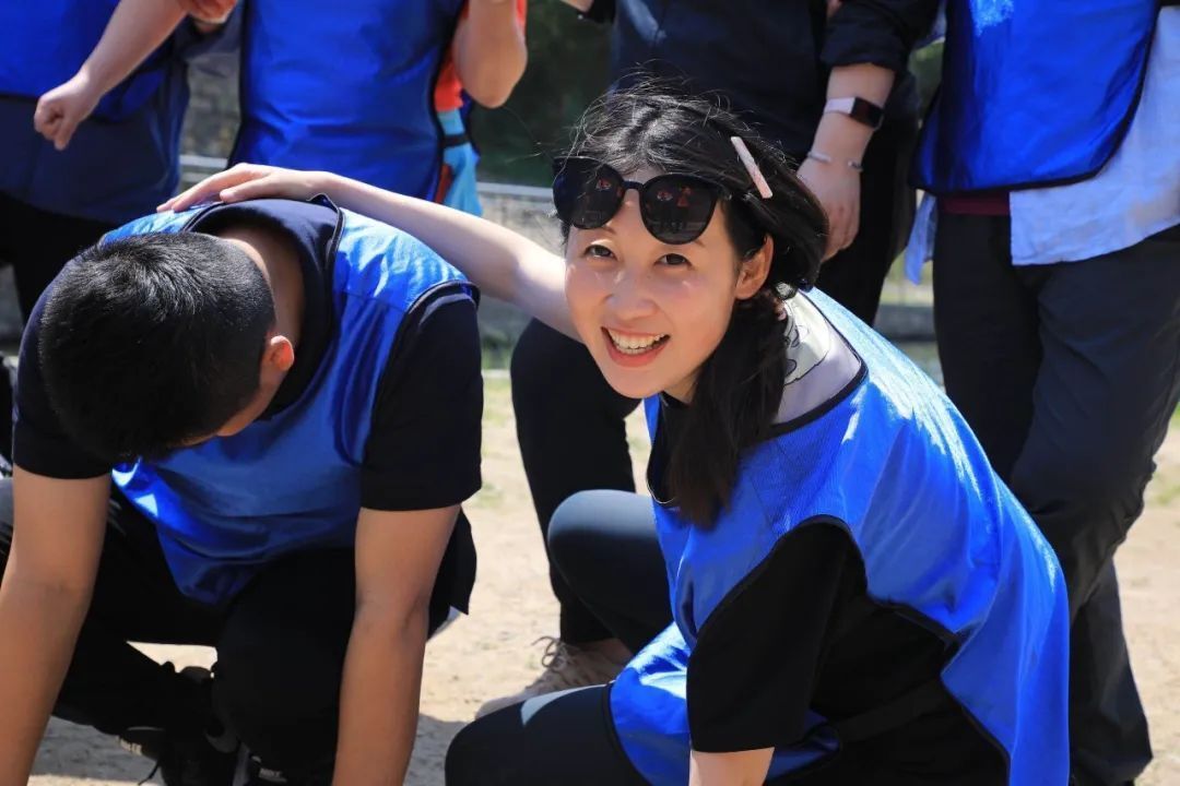 在黨史知識競答環(huán)節(jié),每隊抽取兩人答題,其余隊員完成指定動作。比賽過程十分精彩,各組男生女生輪番上陣,不相上下,樂在其中,展現(xiàn)了良好的精神風貌。吶喊聲、歡笑聲、加油聲此起彼伏,汗水揮灑在“賽場”,快樂流露在每位隊員的臉上。