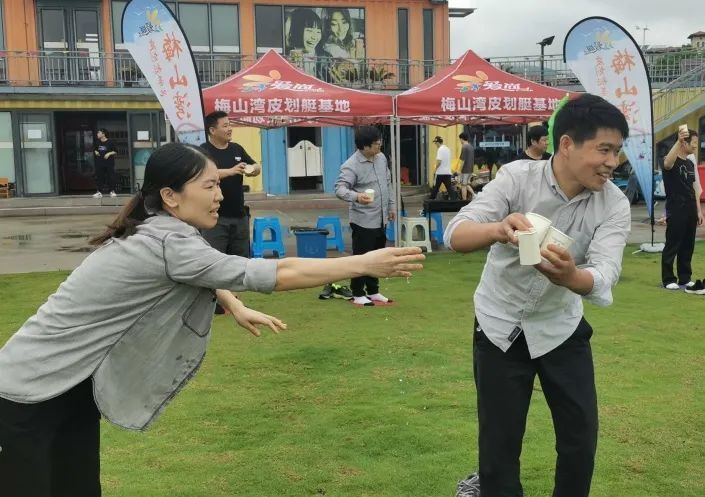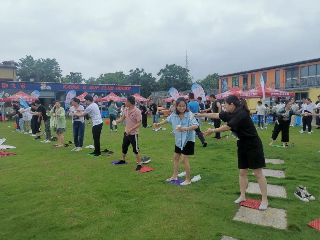 團(tuán)建活動項目——指壓板運水,剛聽到指壓板的時候大家是奔潰的,感受過的人很難會喜歡上這份酸爽。正式開始的時候,大家竟是毫不猶疑的拖鞋站立在指壓板上,沒有預(yù)料中痛苦的叫聲,似乎都沉浸在比賽緊張的氣氛中,有的組是一個接一個的倒水,有的組是一杯一杯的傳遞或空或滿的水杯,方式各不相同,當(dāng)然結(jié)果也不盡相同。