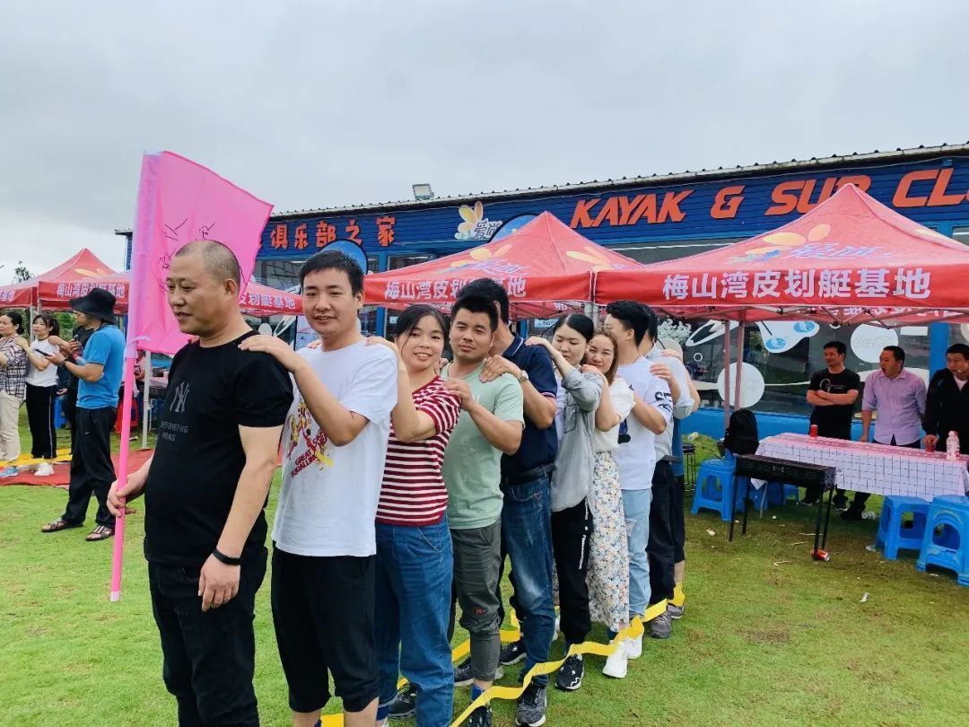 安防科技團(tuán)建日清晨,八十幾位年輕人一起坐著大巴,遠(yuǎn)離忙碌的城區(qū),沿著被霧氣環(huán)繞的太河路,到了目的地——皮劃艇團(tuán)建活動基地。在簡單的整頓之后,我們隨機(jī)分成了六個隊伍:帝壹隊、你說的對隊、小虎隊、必勝隊、勇敢隊以及炮兵隊,并展示了別出心裁的旗幟以及口號。