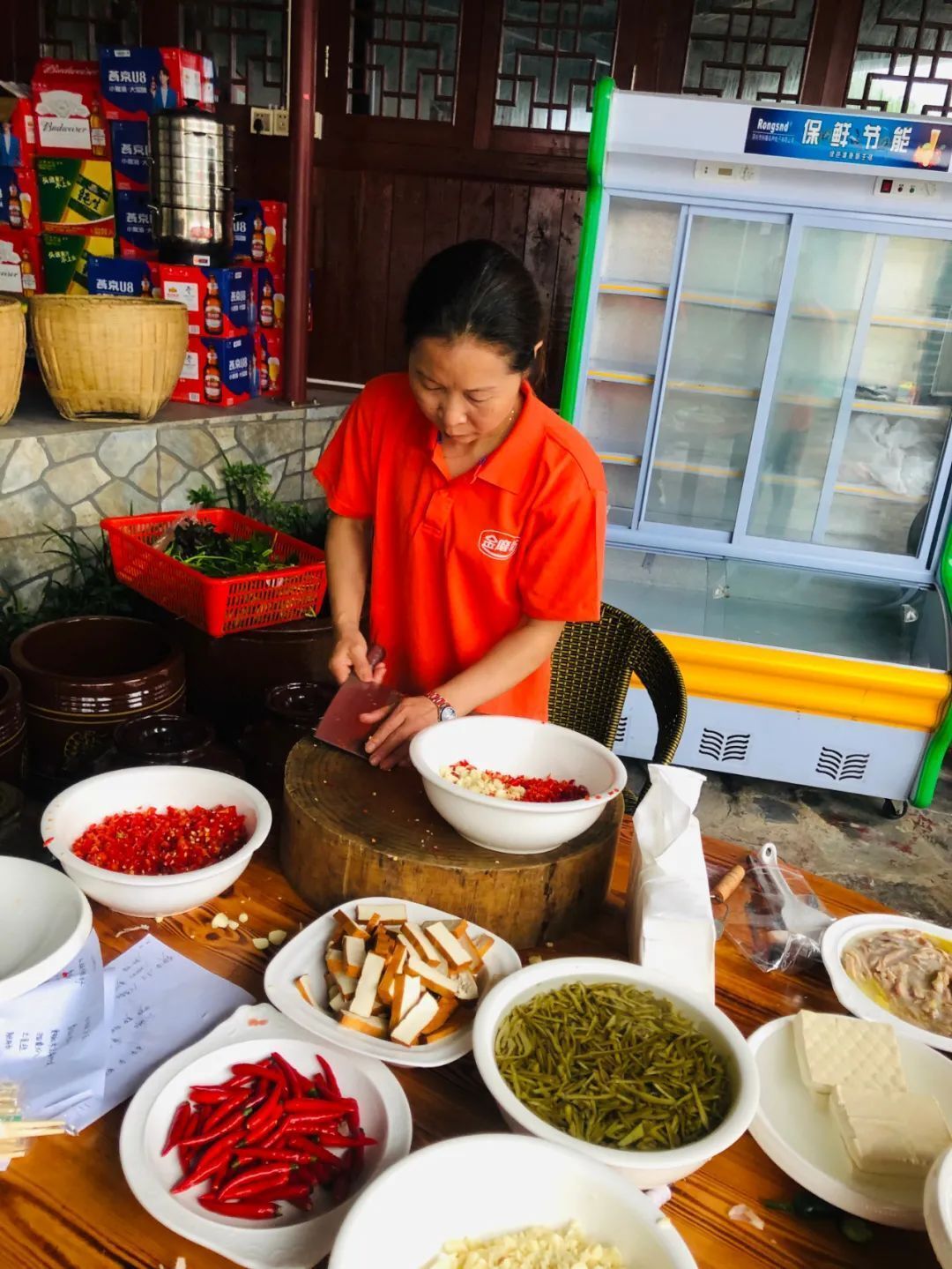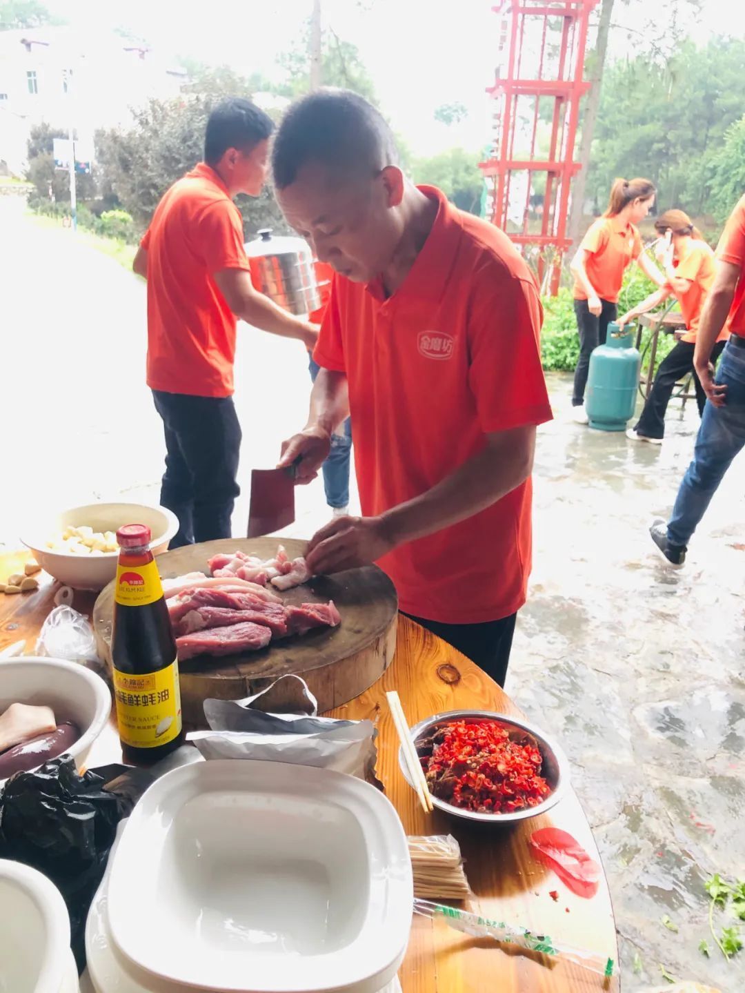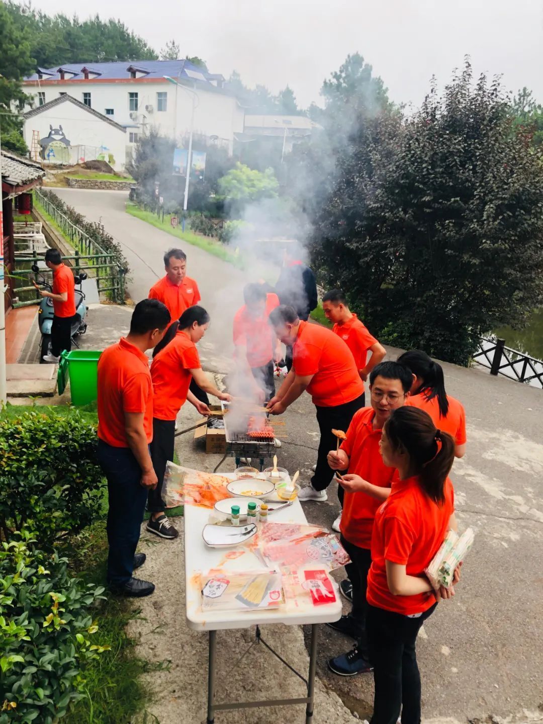 遠離了城市的喧囂,回歸大自然,自己做飯準備晚宴,也是一次展示自己才藝的舞臺。大家聚在一起,有負責準備各種食材的,有負責洗菜切菜的,有負責燒烤的,還有大廚掌勺的,剩下的人就是萬能小助手,哪里需要哪里搬,歡聲笑語,其樂融融。