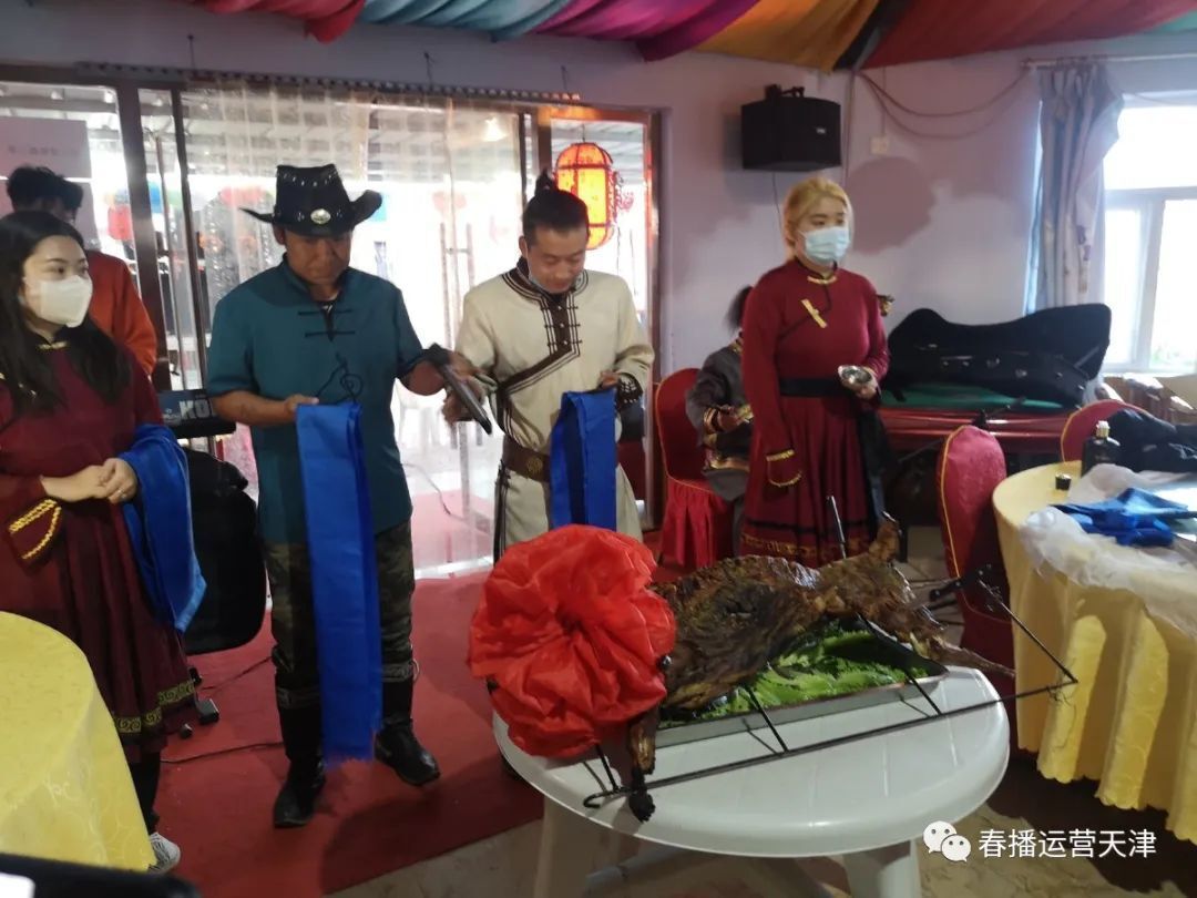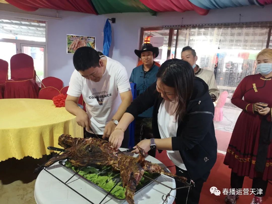 晚上回到蒙古包,當(dāng)?shù)啬撩窬臏?zhǔn)備了烤全羊,請(qǐng)最尊貴的客人春播運(yùn)營(yíng)平臺(tái)天津省總經(jīng)理董澤輝和副總經(jīng)理劉寶娜共同為宴會(huì)進(jìn)行開(kāi)羊儀式!