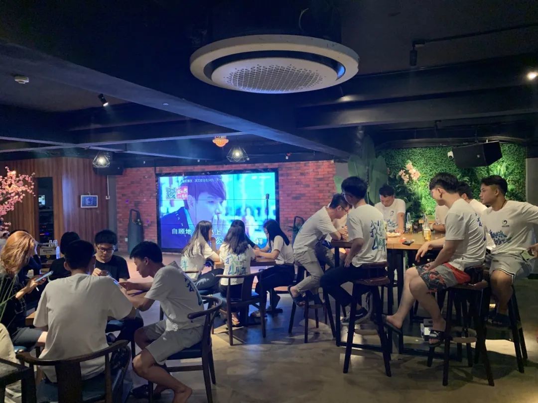 吃飽喝足后,眾人休憩于海灘邊的酒吧。