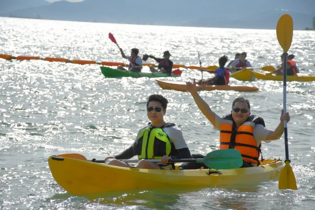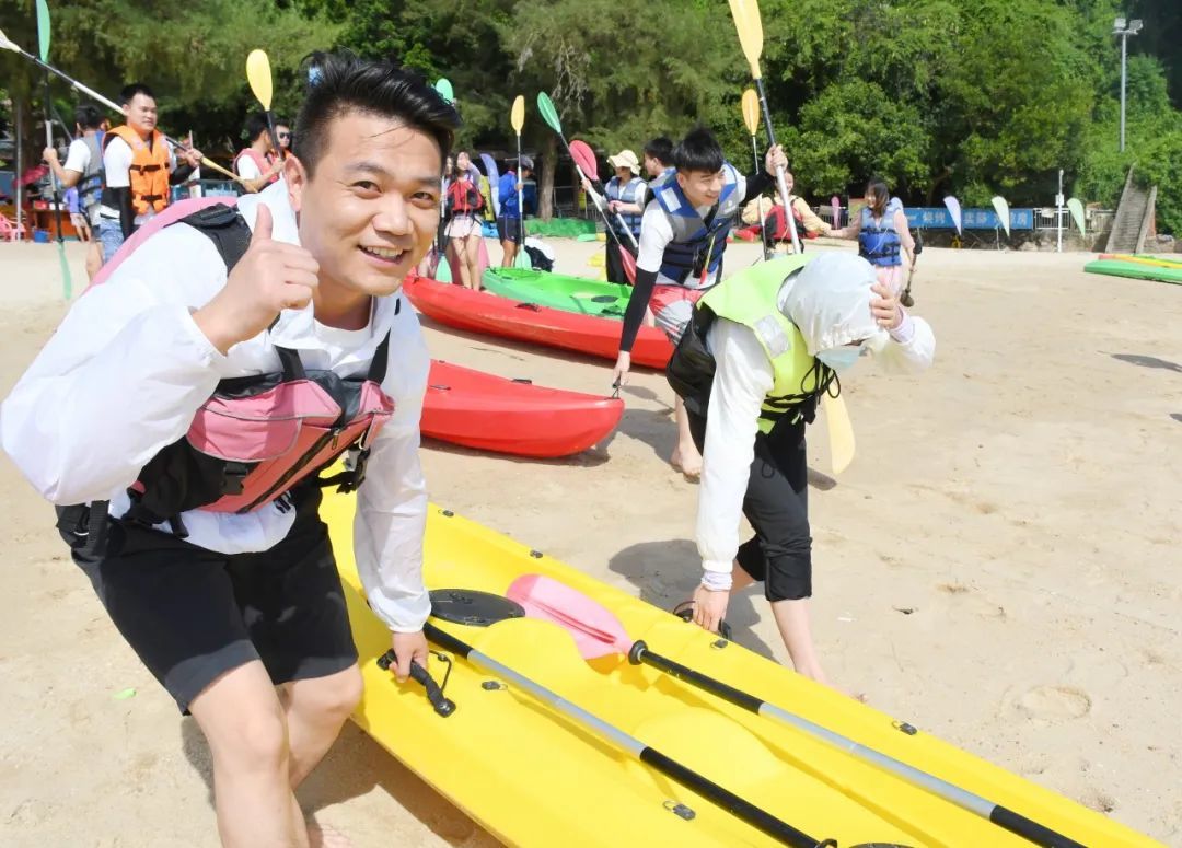 大家迫不及待要與海水親密接觸,手執(zhí)船槳登上皮劃艇,在陽光下肆意揮灑汗水,讓青春閃光。