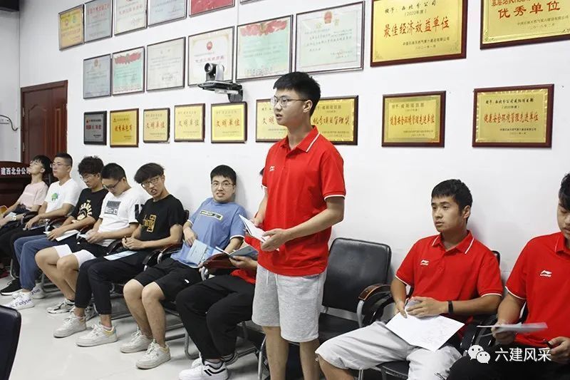 分公司、咸陽項(xiàng)目部領(lǐng)導(dǎo),各科室長(zhǎng),新分大學(xué)生參加典禮儀式。開班典禮上,參會(huì)的各位領(lǐng)導(dǎo)對(duì)新同事們表示熱烈歡迎,對(duì)新同事們?nèi)蘸蟮墓ぷ骷挠韬裢?,希望新同事們能立足崗位,戒驕戒躁,踏?shí)工作,盡快成才。
