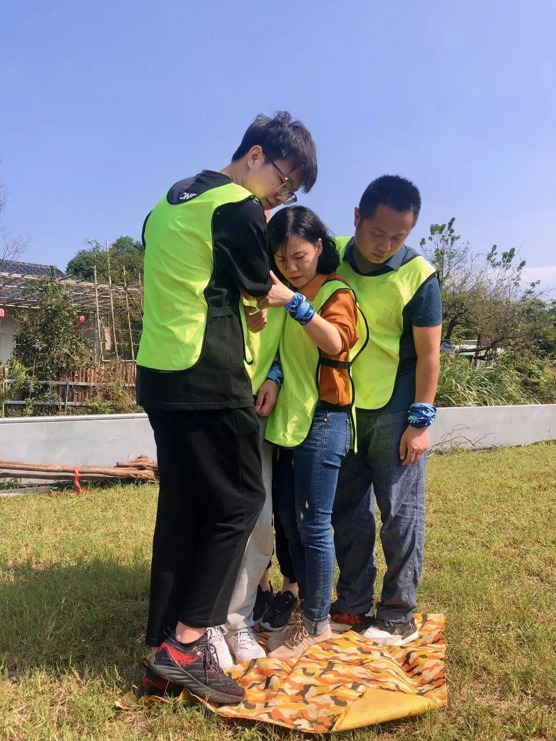 第三個團(tuán)建項(xiàng)目:每個隊(duì)伍派出3男3女依次上場,在隊(duì)友的指揮下在指定區(qū)域內(nèi)蒙眼攻擊對手。