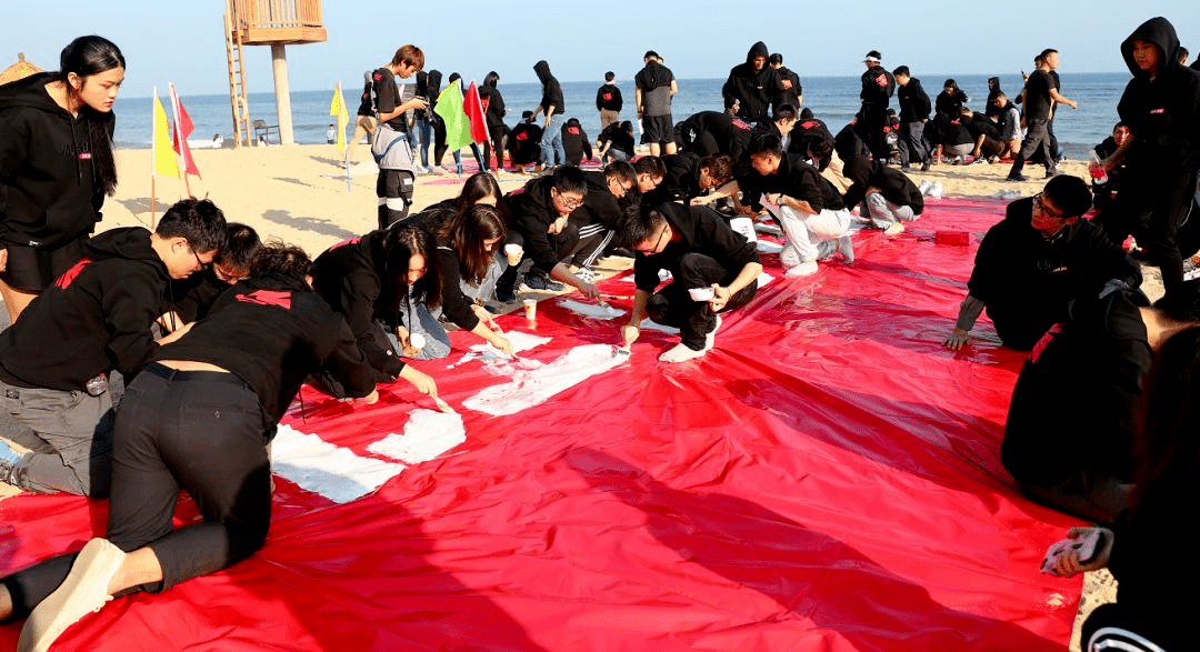 熱身游戲完畢后,我們分好組,進(jìn)行這次團(tuán)建的主要活動(dòng)內(nèi)容,就是我們的共繪藍(lán)圖,隨機(jī)組隊(duì),共同為一個(gè)模塊進(jìn)行繪畫上色,組內(nèi)隊(duì)員分工,有顏料組、設(shè)計(jì)組、繪畫組物料組等等,大家按照組長(zhǎng)分好的角色配合隊(duì)員完成任務(wù),務(wù)必完美的繪畫出我們?nèi)A盛的愿景圖。完成的隊(duì)伍能率先與自己的作品合影,并且喊出團(tuán)隊(duì)愿景。最后所有的繪畫作品完成后進(jìn)行拼接,行成整副巨畫,航拍留念。
