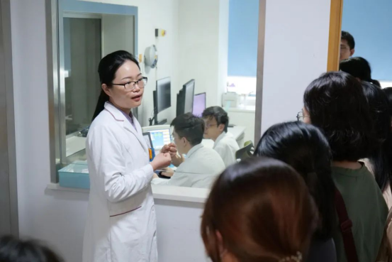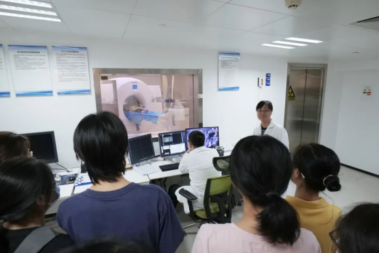 參觀期間,各科室主任、醫(yī)生向師生們介紹了各相關(guān)科室職能、影像設(shè)備以及操作規(guī)范與技巧,積極與學(xué)生們互動(dòng)。學(xué)生們孜孜以求,仔細(xì)詢(xún)問(wèn)影像設(shè)備的具體操作步驟與診斷流程,理論聯(lián)系實(shí)際,從臨床觀察中學(xué)到影像診斷的相關(guān)知識(shí)。
