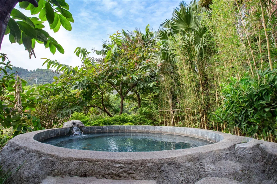 南越王主題風(fēng)情泡池分布于山水從林之間,泉池周圍奇山異石,綠樹成蔭。清凈、私密的環(huán)境融入佛家禪意境,是修身養(yǎng)性的上等佳地。
