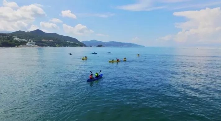 金沙灣是集水質(zhì)好、景色美、運(yùn)動(dòng)項(xiàng)目齊全為一體的海灘,三面青山環(huán)抱,一面碧波萬頃,還是知名綜藝節(jié)目《高能少年團(tuán)》的取景地。